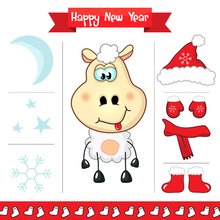 かわいい陽気な若い羊 ラム ムートン ベクトル イラストのお正月セットです 正月 クリスマスのグリーティング カードのベクター イラストです の イラスト素材 ベクタ Image