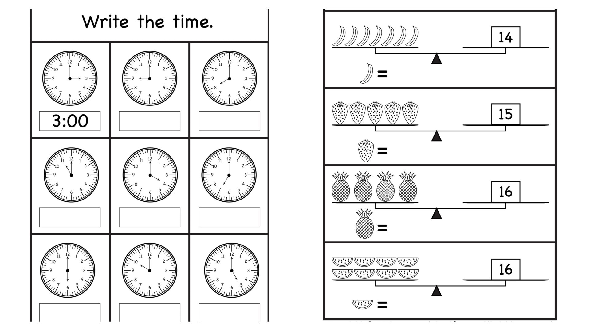 四位數的認識(按"重新整理"做另一題) 三位數加三位數 1)加法應用題 減法 三位數減法 香港紙幣 香港流通的貨幣 除法 1) 除法計算卡 2) 除法練習 3)除法應用題 數據處理 象形圖 1) 智能繪圖工具:象形圖高思維數學訓練 (升級版) ${sidemenutitle} 教學資源下載 中文科;技能:看時鐘(整點),數學 > 主題式 > 國小 > 數與量 > 時間 > 一年級幾點與幾點半。源自於:均一教育平台 願 每個孩子都成為終身學習者,成就自己的未來。